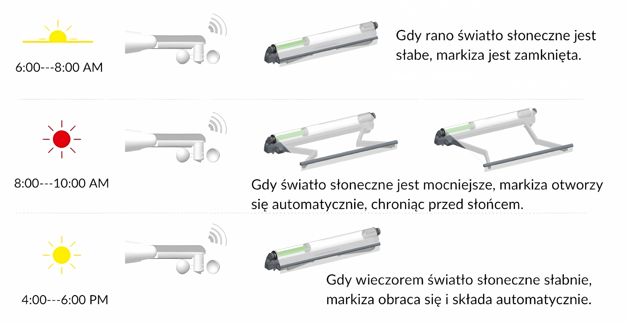 Automatický senzor světla a větru je řešení, které poskytuje maximální pohodlí a klid. Díky němu nemusíte pamatovat na zatahování či vytahování markýzy – systém to udělá za vás, zaručujíc bezpečné a pohodlné používání terasy za každých podmínek.