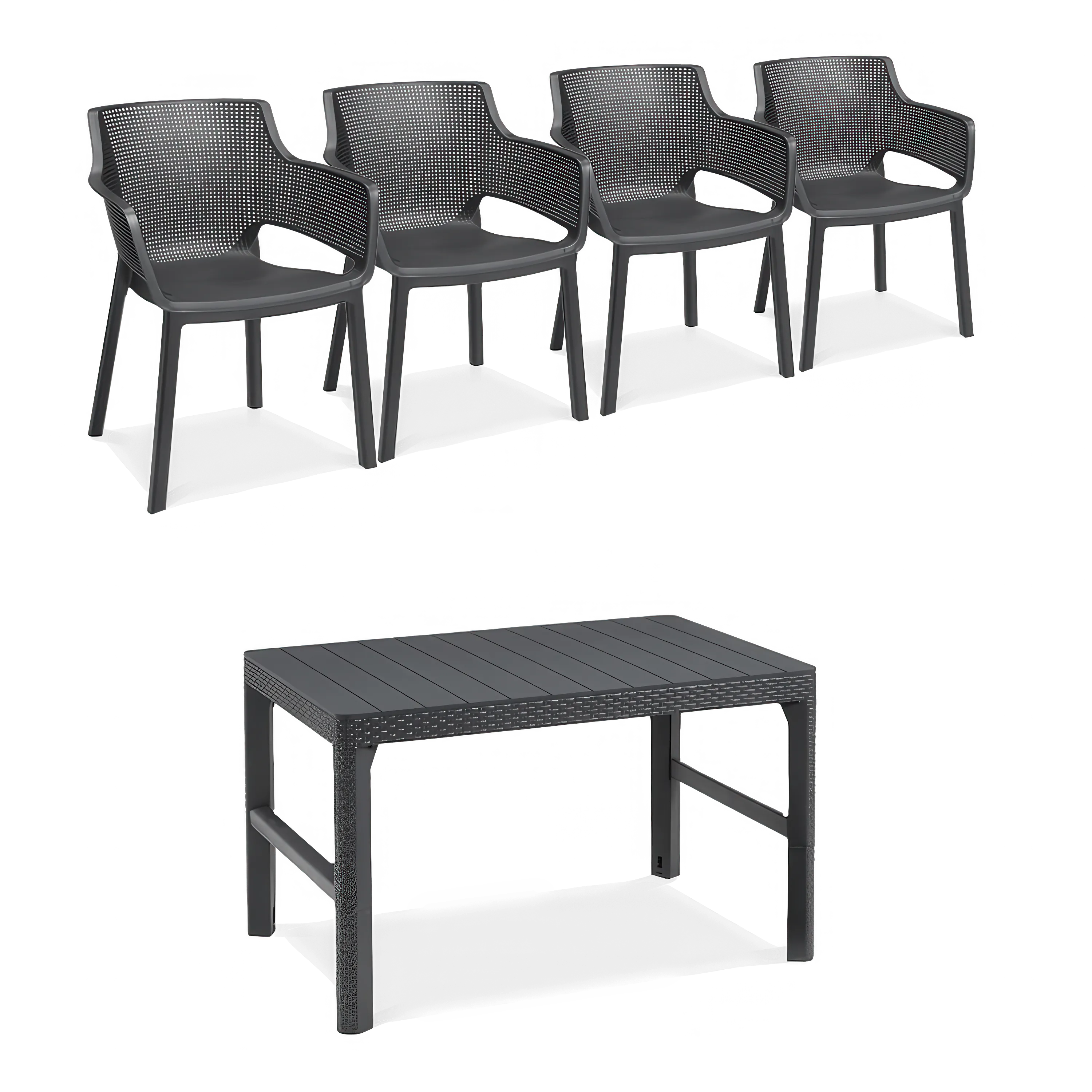- židle a stůl jsou vyrobeny z vysoce kvalitního polypropylenu v grafitovém odstínu