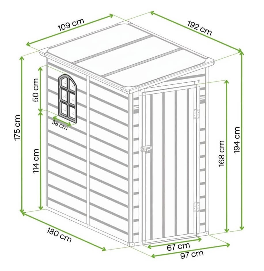 Domek na nářadí Boston v elegantním béžovém odstínu je skvělým řešením pro ty, kteří hledají funkční úložný prostor pro nářadí nebo zahradní techniku. S rozměry 109x192 cm a výškou 194 cm se hodí na malé zahrady nebo rekreační pozemky. Domek je vyroben z polypropylenu – materiálu, který zajišťuje trvanlivost a odolnost vůči povětrnostním vlivům a mechanickému poškození, a zároveň je lehký. Šikmá střecha chrání před hromaděním dešťové vody a sněhu, zatímco ventilační systém umožňuje účinnou výměnu vzduchu, což zabraňuje navlhnutí uložených předmětů.
