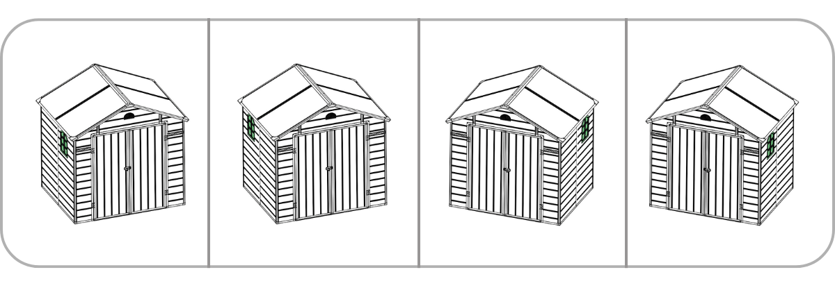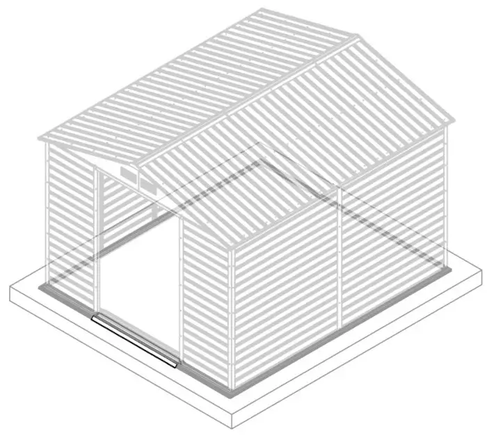 Před zahájením instalace se ujistěte, že betonová podlaha je rovná a zcela suchá. Instalace domku na nerovný povrch může vést k nestabilitě konstrukce. Kotvy do země nejsou součástí dodávky.