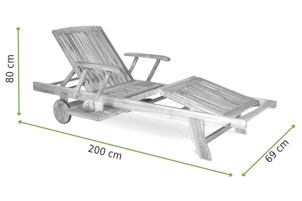 Lehátko HAVANA je stylovou kombinací pohodlí, funkčnosti a elegantního designu, která je určena pro odpočinek na zahradě, terase nebo u bazénu. Je vyrobeno z odolného akáciového dřeva a vyznačuje se výjimečnou odolností vůči povětrnostním vlivům, takže je ideální pro mnoho venkovních sezón. Ergonomický design s nastavitelným opěradlem (až do 5 poloh), podnožkou a sklopnými područkami umožňuje úplné přizpůsobení a maximální relaxaci.