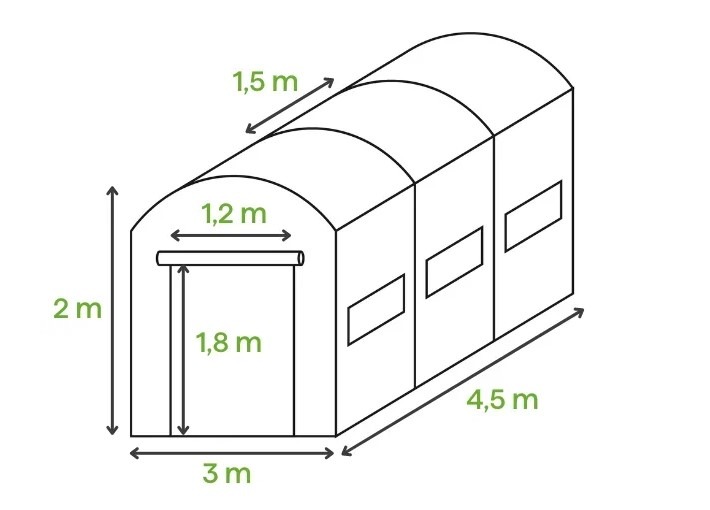 Dvoudveřový fóliovník 3x4,5x2 - 13,5m2 Zelený