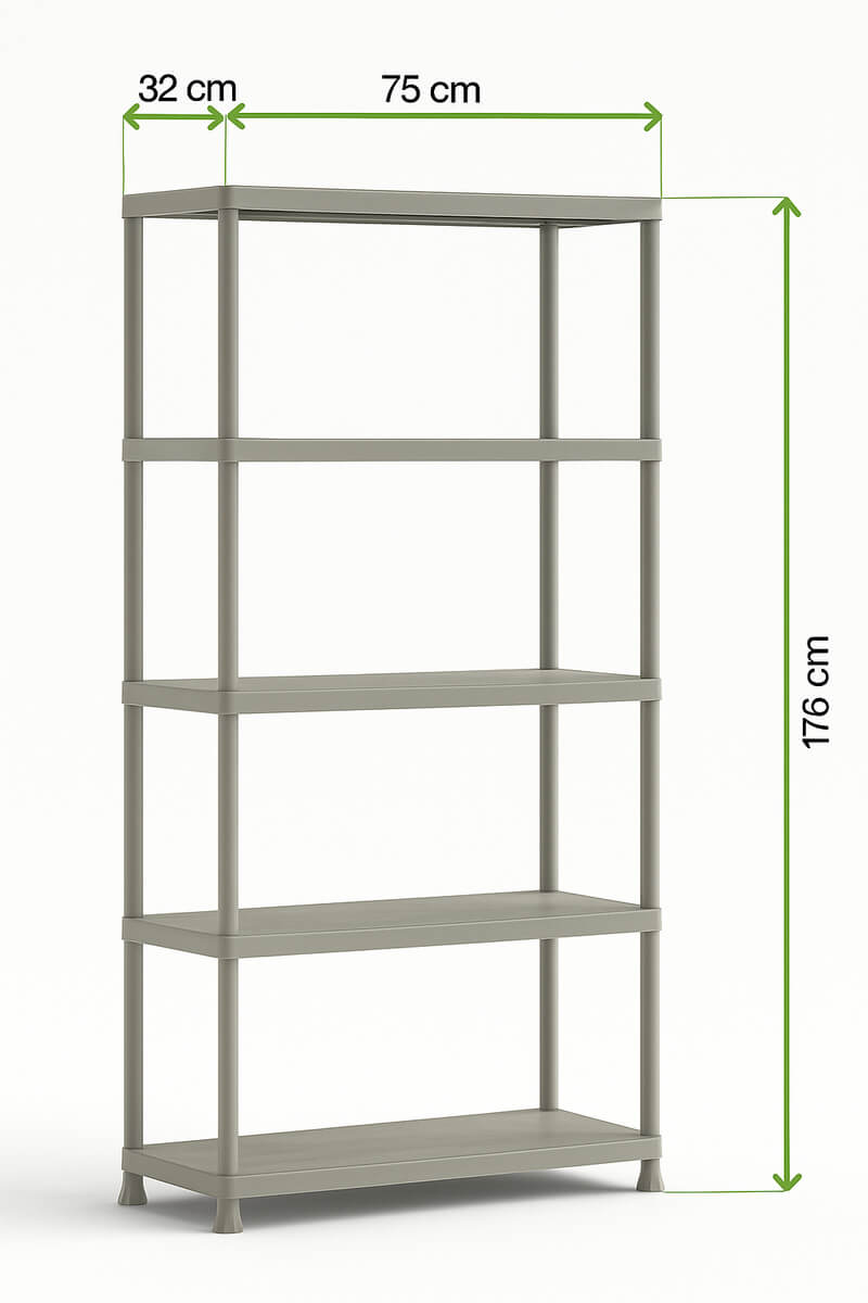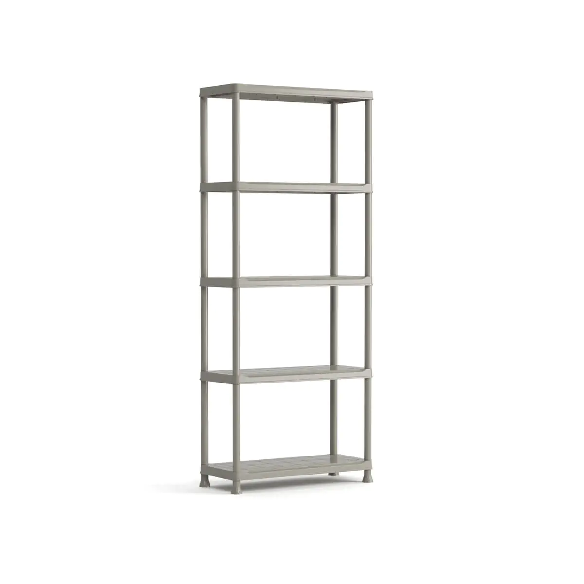 Polička Plus Shelf 75/5 od společnosti Keter je všestranným a praktickým úložným řešením pro různé prostory od domácnosti přes sklep až po garáž nebo dílnu. Je vyrobena z odolného, vysoce kvalitního plastu a vyznačuje se odolností vůči vlhkosti a UV záření, což zaručuje dlouhou životnost. Pět polic, z nichž každá má nosnost až 25 kg, lze libovolně uspořádat a přizpůsobit tak konfiguraci regálu vašim potřebám. Další konstrukční výztuhy zajišťují větší stabilitu a bezpečnost uložených předmětů.