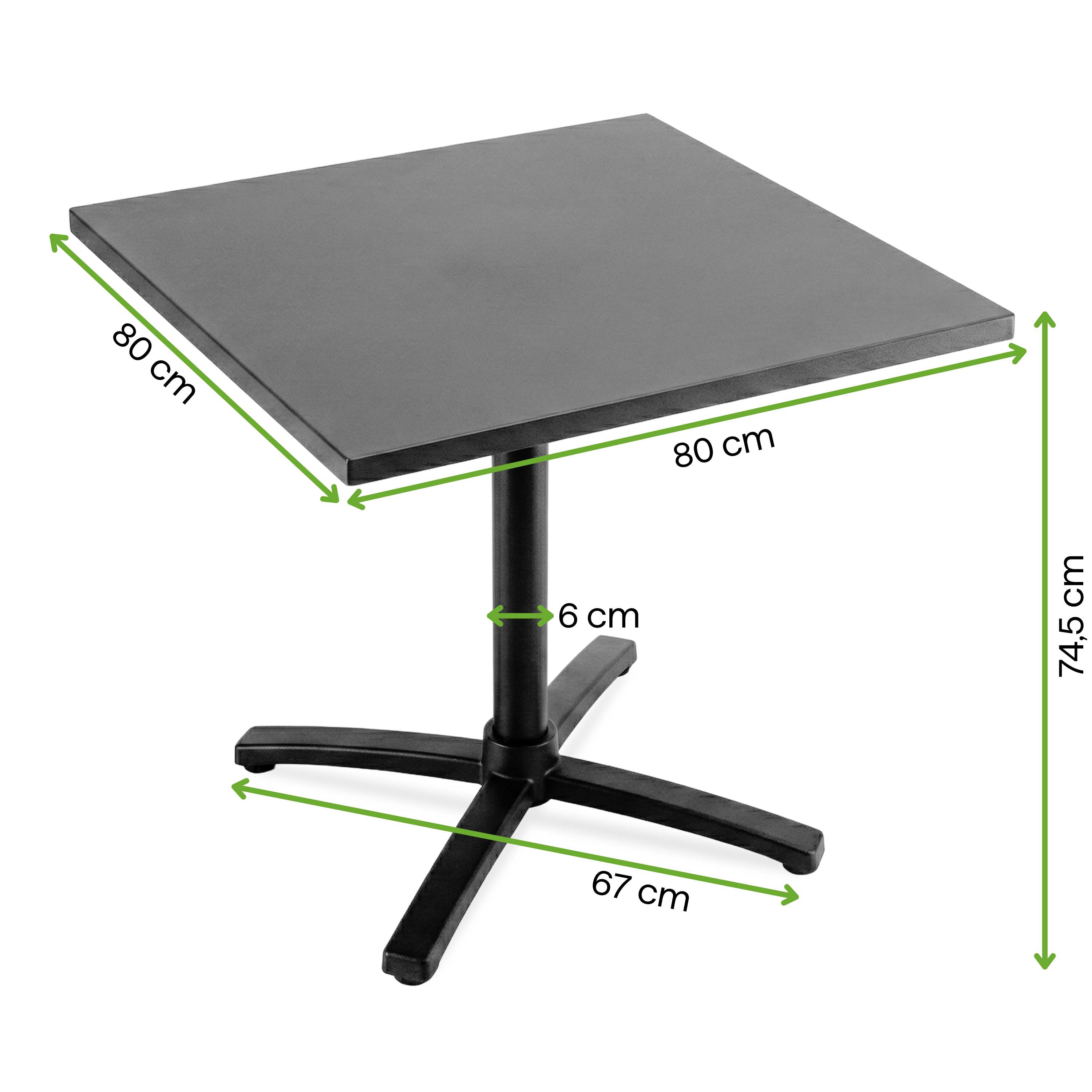 - Rozměry stolové desky: 80 × 80 × 2,5 cm