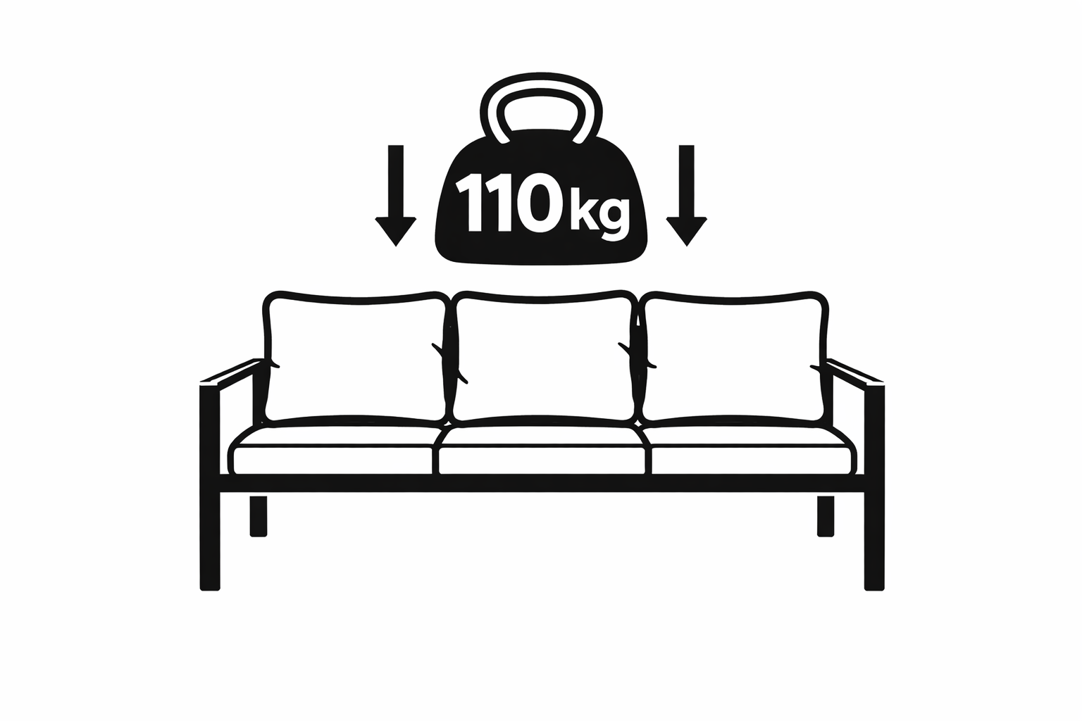 Pohovka má nosnost až 110 kg na jedno sedadlo a její konstrukce byla přizpůsobena intenzivnímu používání.