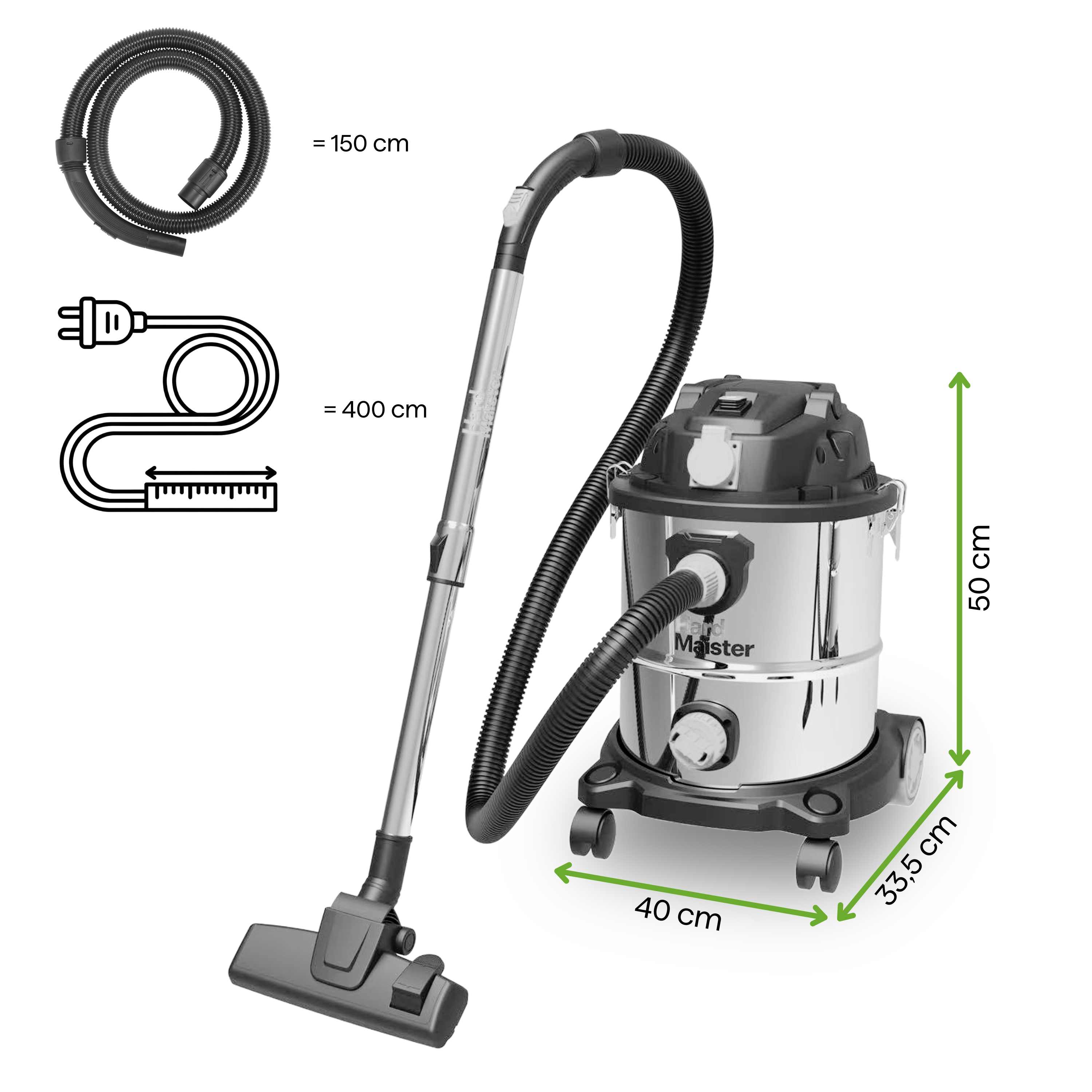 Kompaktní dílenský vysavač HardMaister o objemu 20 litrů pro suché i mokré vysávání je funkční zařízení určené pro domácí a garážové použití. Vybaven motorem o výkonu 1200 W a HEPA filtrem, spolehlivě odstraňuje jemný prach a rozlité kapaliny. Robustní nádrž z nerezové oceli zajišťuje odolnost proti poškození, zatímco inteligentní plovákový ventil dbá na bezpečnost při odsávání vody. Ergonomická konstrukce s funkcí vyfukování umožňuje rychlý a velmi efektivní úklid v garáži nebo sklepě.