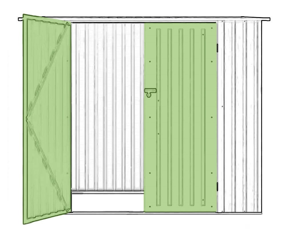Dvojité výklopné dveře chatky KENT usnadňují přístup do interiéru a zajišťují pohodlí i při přenášení rozměrného vybavení. Zámek se závorou umožňuje montáž přídavného visacího zámku (není součástí dodávky), což zvyšuje úroveň zabezpečení.