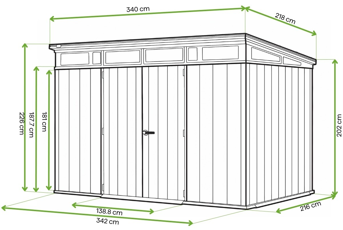 Keter Aristan 11x7 je prostorný a moderní domek na nářadí s designem inspirovaným přírodním dřevem. Je vyroben z pokročilého materiálu DUOTECH a spojuje estetiku s výjimečnou odolností vůči povětrnostním vlivům – bez nutnosti impregnace nebo údržby. Konstrukce zahrnuje pevnou podlahu, pevnou střechu s ocelovou výztuží a vysoký interiér, který bez problémů pojme i větší zahradní zařízení. Díky světlíkům ve střeše a větracím otvorům poskytuje domek přirozené denní světlo a stálou cirkulaci vzduchu. Široké dvojité dveře s možností uzamčení na visací zámek zajišťují pohodlí i bezpečnost užívání. Je ideální pro uložení nářadí, sezónního příslušenství nebo větších zařízení – s doživotní zárukou kvality od výrobce*.