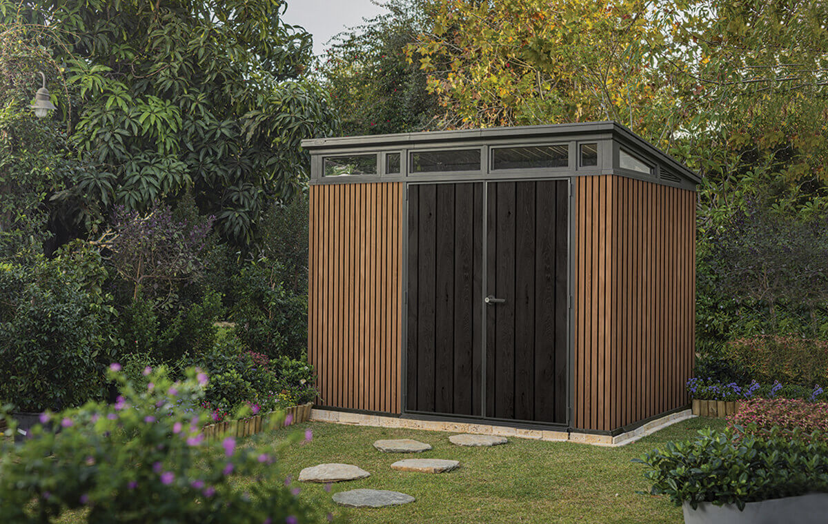 Kůlna na nářadí PENTHOUSE 9x7 Brown Signature Collection - Keter je kombinací prestiže a špičkové funkčnosti. Jedinečný povrch dosažený technologií DecoCoat dokonale napodobuje kouzlo přírodního dřeva a zároveň je zcela odolný vůči vlhkosti a UV záření. Konstrukce vyztužená ocelovými prvky zajišťuje výjimečnou odolnost a bezpečnost používání po mnoho let. Prosklené prvky a účinný ventilační systém zajišťují optimální podmínky uvnitř, zatímco nízký práh zvyšuje komfort užívání. Penthouse 9x7 je ideálním místem pro uložení nářadí, nábytku a zahradního vybavení.