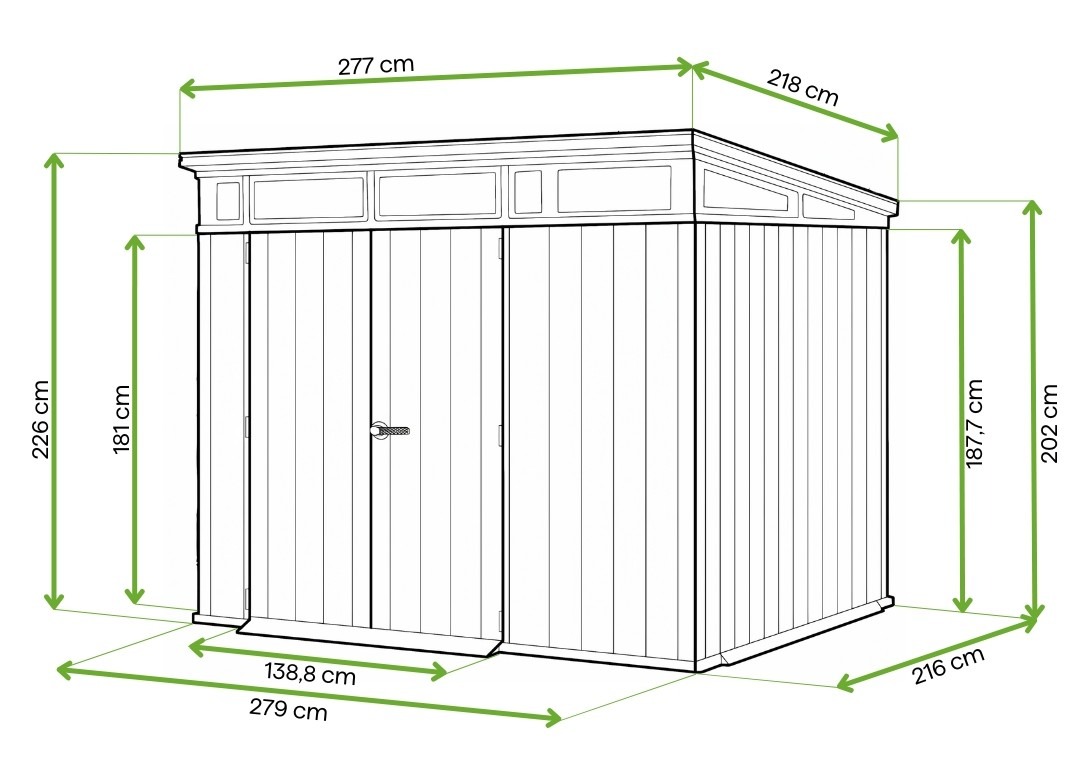 Rukojeť s možností uzamčení visacím zámkem zajišťuje bezpečnost uloženého nářadí a umožňuje vám plnou kontrolu nad přístupem do vnitřních prostor domku