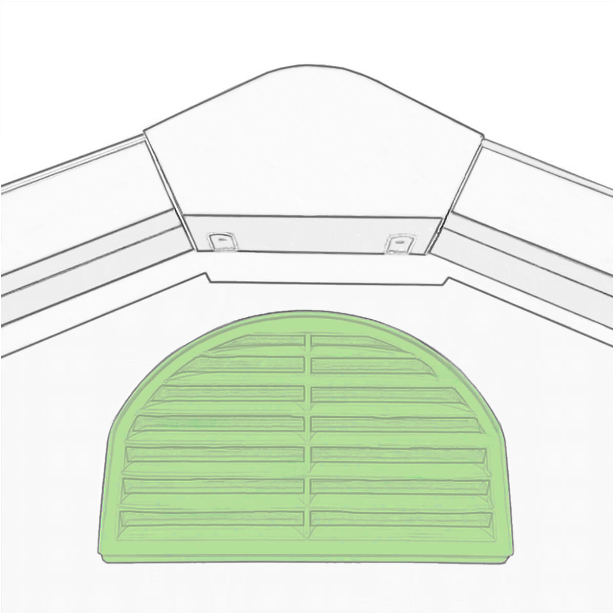 Dva větrací otvory v domku na nářadí VERMONT podporují nepřetržitou cirkulaci vzduchu a zabraňují tak hromadění vlhkosti. Tento systém chrání interiér před plísněmi, korozí a negativními vlivy vlhkého prostředí.