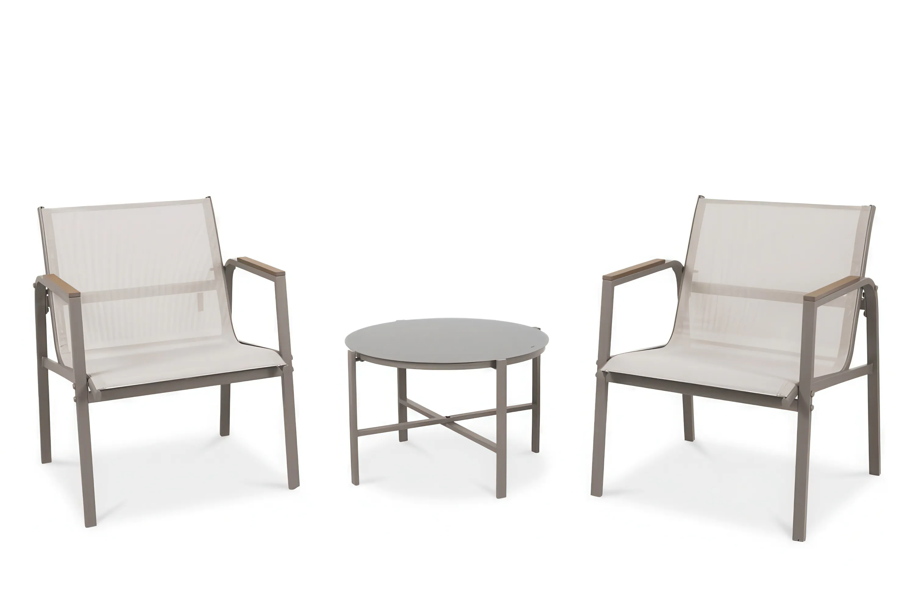 Proměňte svůj balkon nebo terasu a vytvořte místo, které se stane vaším oblíbeným útočištěm. Sada MANGO BALCONY Nature od společnosti Focus Garden představuje kombinaci odolnosti a pohodlí, která uspokojí i ty nejnáročnější uživatele. Je ideální pro malé až středně velké prostory, potěší svou funkčností a dodá charakter každému prostředí. Nábytek je vyroben z pozinkované oceli s práškovým nástřikem, který zajišťuje odolnost proti vlhkosti, korozi a UV záření. Stabilní rám je zárukou trvanlivosti a bezpečného používání po několik let. Středem soupravy je kulatý stůl o průměru 65 cm s tvrzenou deskou, která nejenže vypadá moderně, ale je také odolná a snadno se čistí. Díky své výšce 41 cm je ideálním místem pro posezení u kávy, knihy nebo svačiny, zatímco dvě ergonomická křesla poskytují vysokou úroveň pohodlí. Područky s povrchovou úpravou z materiálu polywood dodávají kouzlo a přirozený dojem a odkazují na skandinávský styl. Sedáky a opěradla ze vzdušné síťoviny nabízejí pohodlí a přizpůsobení i při dlouhodobém používání. MANGO BALCONY Nature je souprava určená do menších prostor. Její kompaktní rozměry jsou ideální pro balkony, terasy nebo malé zahrady, kterým dodají styl a funkčnost. vyberte si soupravu MANGO BALCONY Nature od společnosti Focus Garden ještě dnes!