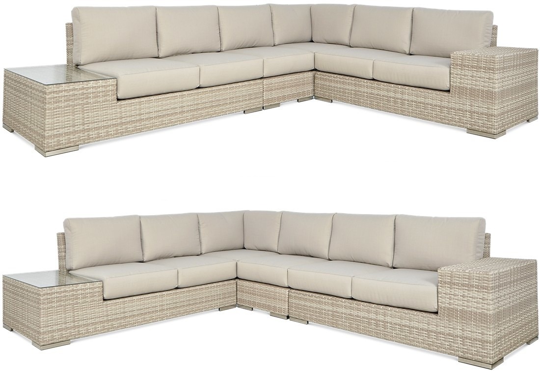 Sada obsahuje: rohovou soupravu, stolek, polštáře