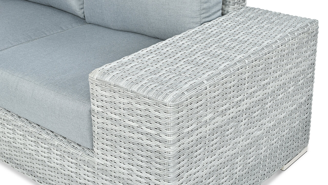 Stone Grey je rohová sedací souprava v kamenném odstínu, která se skvěle hodí do moderních prostor. Její stylový vzhled jde ruku v ruce s výjimečnou odolností vůči povětrnostním vlivům a UV záření. Robustní technorattan a hliníkový rám zaručují odolnost po dlouhá léta. Součástí jsou měkké polštáře a praktický stolek s tvrzeným sklem. Ideální pro každou stylovou zahradu nebo terasu.