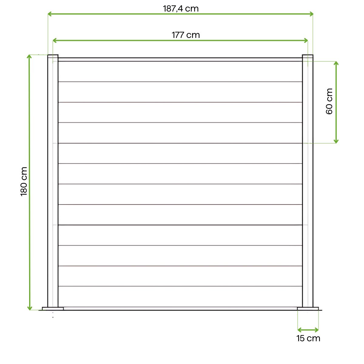 Jeden plotový modul Keter umožňuje vytvořit plot o délce 1,8 metru. Pokud potřebujete oplotit delší úsek, stačí zakoupit příslušný počet modulů: