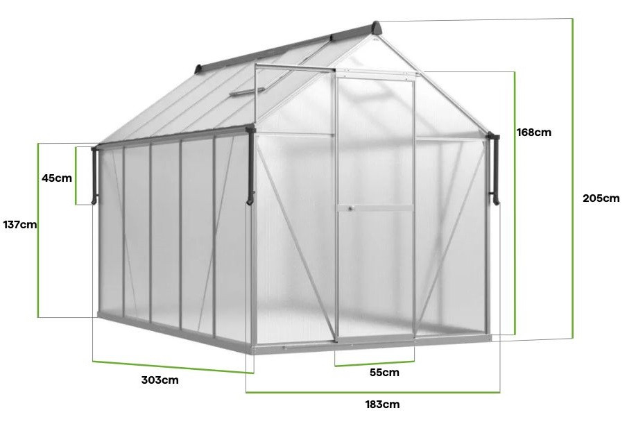 Polykarbonátová skleník Slide-In NEW 183x303cm Silver od Cultivo s vyztuženou konstrukcí je praktickým řešením pro každého milovníka zahradničení. Jeho stříbrné provedení mu dodává moderní charakter, díky čemuž harmonicky ladí jak s tradičními, tak i moderními zahradními prostory. Díky délce 303 cm poskytuje tento model prostor pro pěstování rostlin ve velkém měřítku, ať už chcete pěstovat zeleninu, ovoce, květiny nebo bylinky. Panely z 4 mm silného polykarbonátu, obohacené o UV ochranu, zaručují ideální podmínky pro růst rostlin, účinně rozptylují sluneční světlo a chrání před jeho nadměrným vlivem. Konstrukce skleníku založená na hliníkovém rámu a ocelové základně s pozinkováním zajišťuje odolnost a odolnost proti povětrnostním vlivům. Montáž je jednoduchá a rychlá díky systému Slide-In, který eliminuje problematické spony a zároveň zvyšuje stabilitu celé konstrukce. Praktické posuvné dveře a dvě ventilační okna usnadňují přístup dovnitř a zajišťují dokonalou cirkulaci vzduchu. Skleník Slide-In Silver je ideálním řešením pro zahrady všech velikostí.