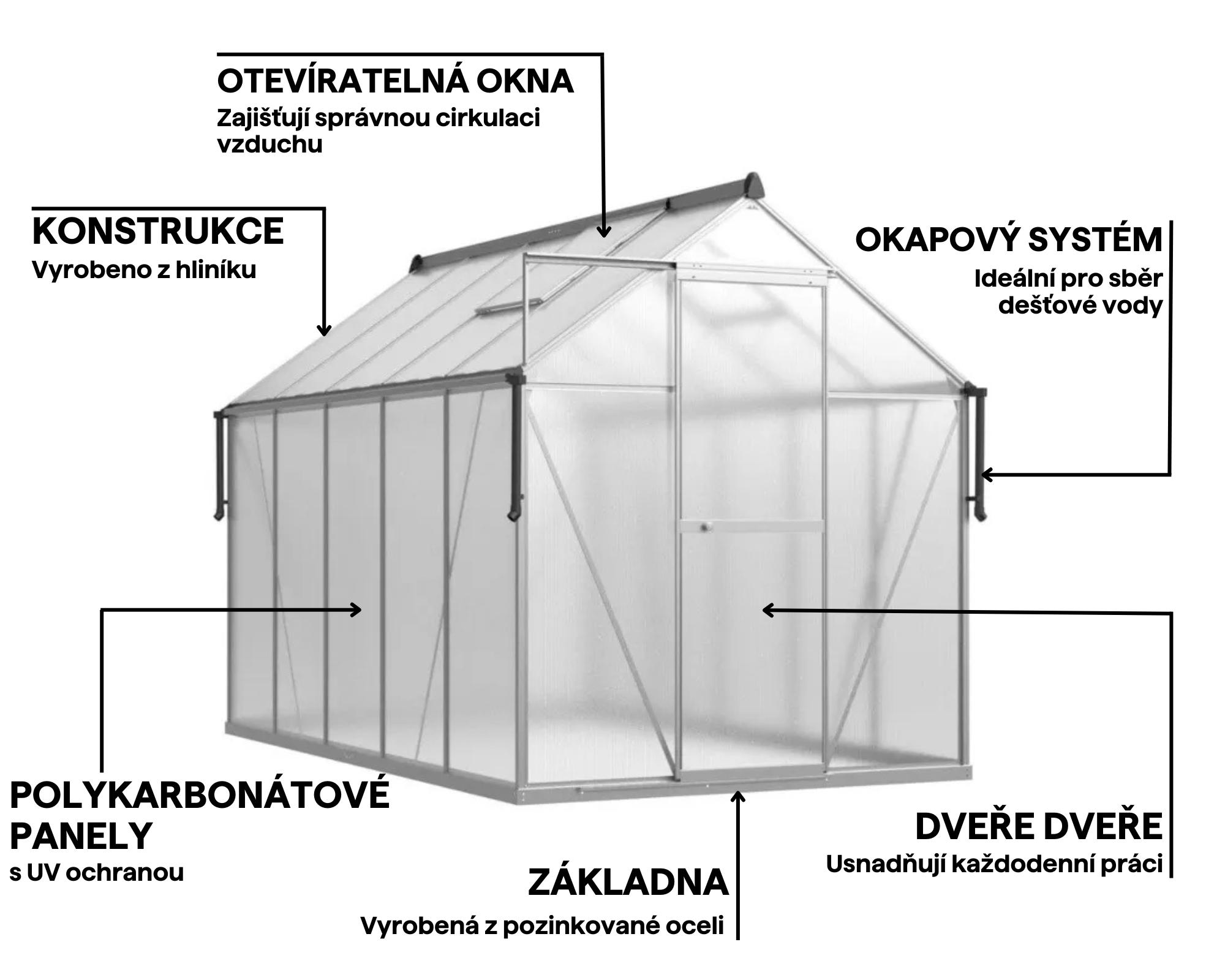 Zahradní skleník z polykarbonátu Slide-In NEW 183x303cm Silver – Cultivo