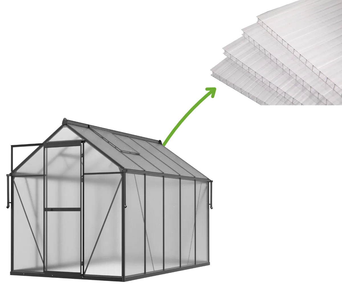 Polykarbonátové desky 4 mm 1291x573 mm vyměnitelné pro skleníky (5 ks) Slide-in - Cultivo