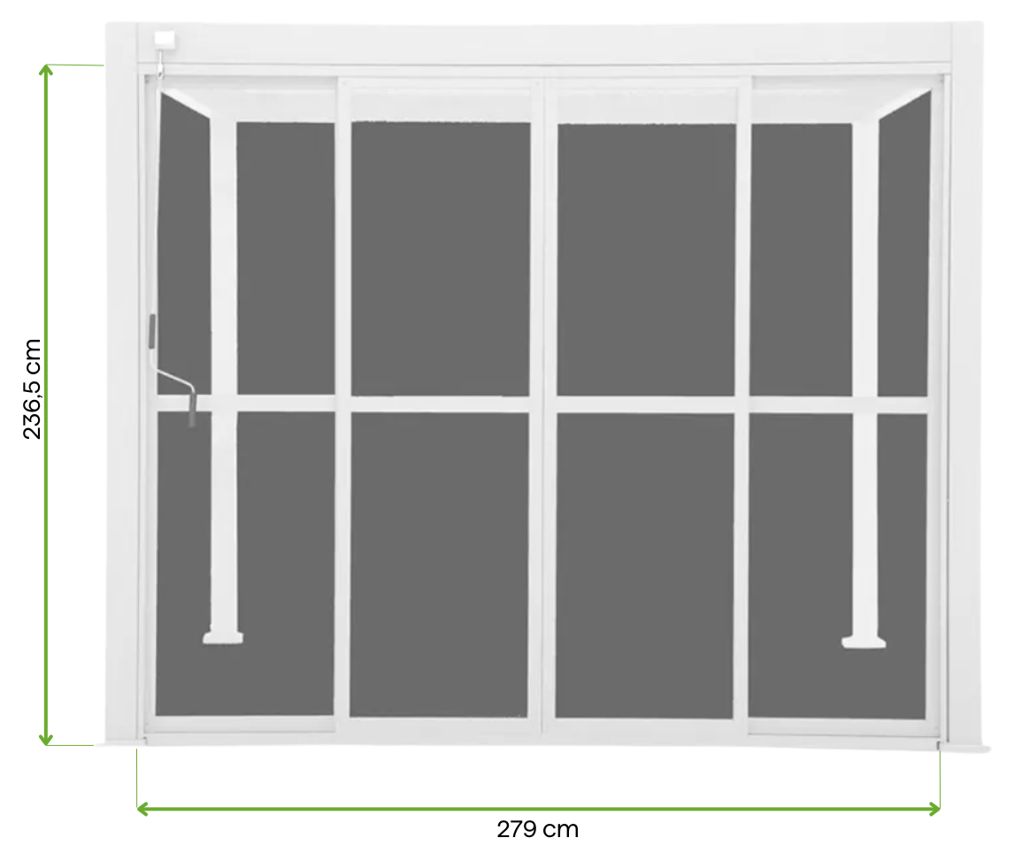 Posuvné dveře z odolného polykarbonátu jsou dokonalým doplňkem pergoly Premium Gutroof v bílé barvě. Dokonale se hodí na boční stěnu o délce 3 metry. Práškově lakovaný hliníkový rám zaručuje odolnost vůči vnějším vlivům a estetický vzhled po dlouhou dobu. Polykarbonátové prosklení zvyšuje komfort používání - dveře se snadno a hladce posouvají a poskytují větší soukromí. Díky své konstrukci jsou spolehlivá i za nepříznivých povětrnostních podmínek bez ohledu na roční období.