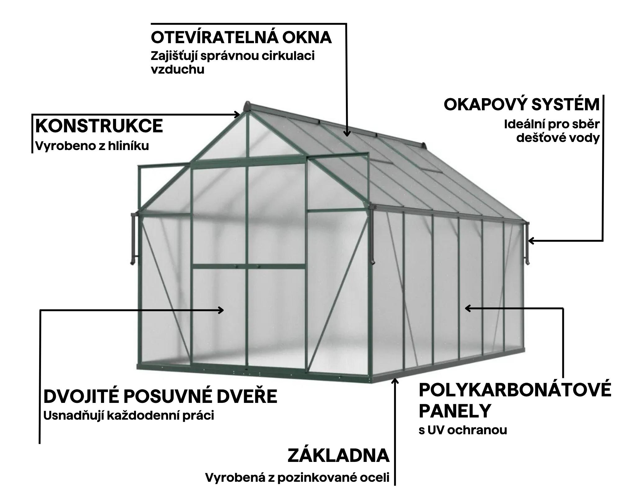Zahradní skleník z polykarbonátu Slide-In NEW 244x370cm Dark Green – Cultivo