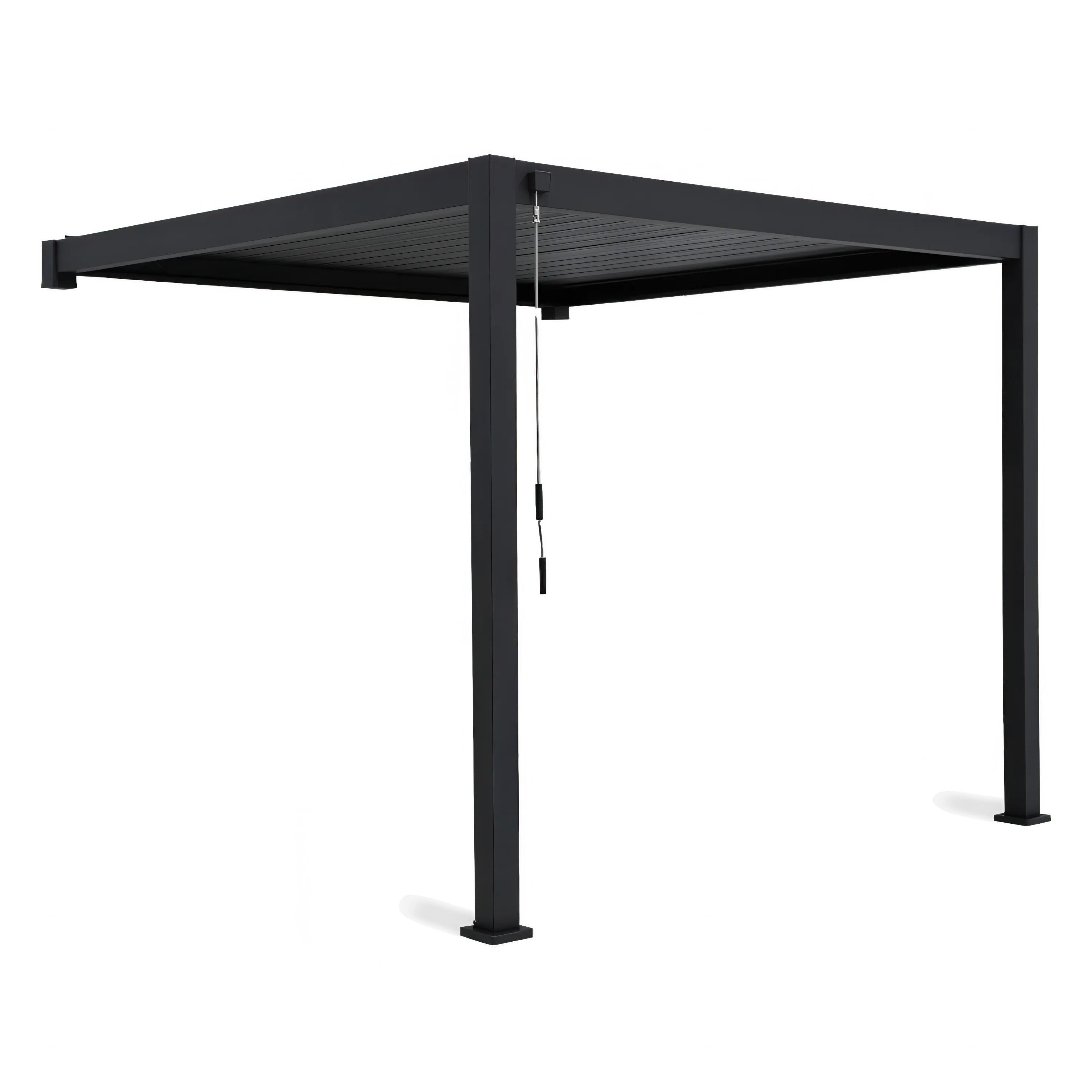 Střešní lamely pergoly nastavitelné od 0° do 90° umožňují plynule měnit úhel sklonu. Poloha 0° poskytuje úplnou ochranu před sluncem a deštěm, zatímco nastavení 90° umožňuje úplné otevření střechy, což maximalizuje větrání a přístup světla.