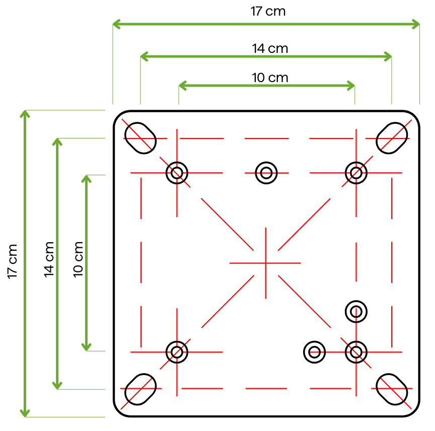 rozteč šroubů upevňujících patku ke svislému nosníku: 10 cm