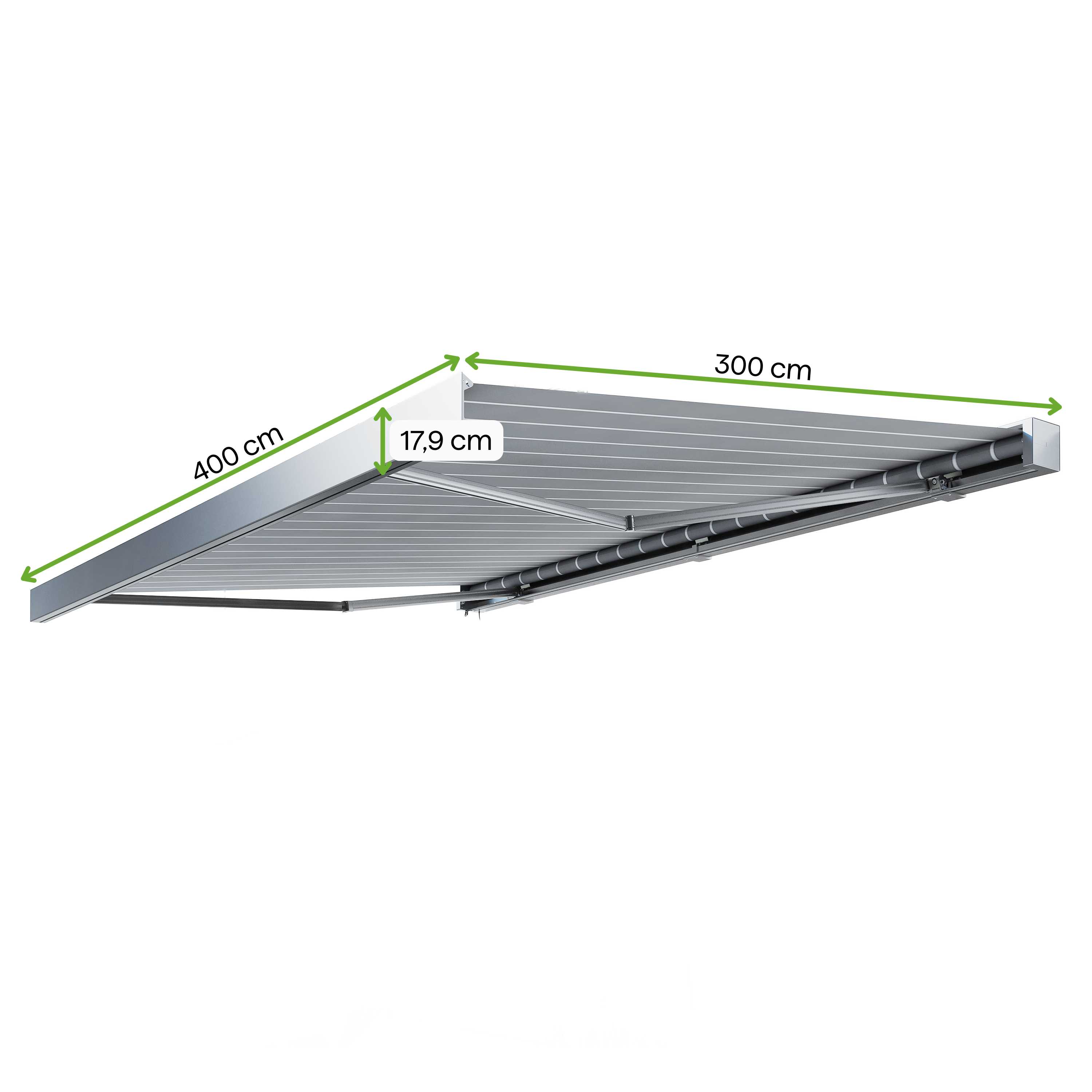 PRIME AUTOMATIC 400x300 BEIGE markýza na terasu s LED osvětlením a senzorem větru/slunce - Gutroof