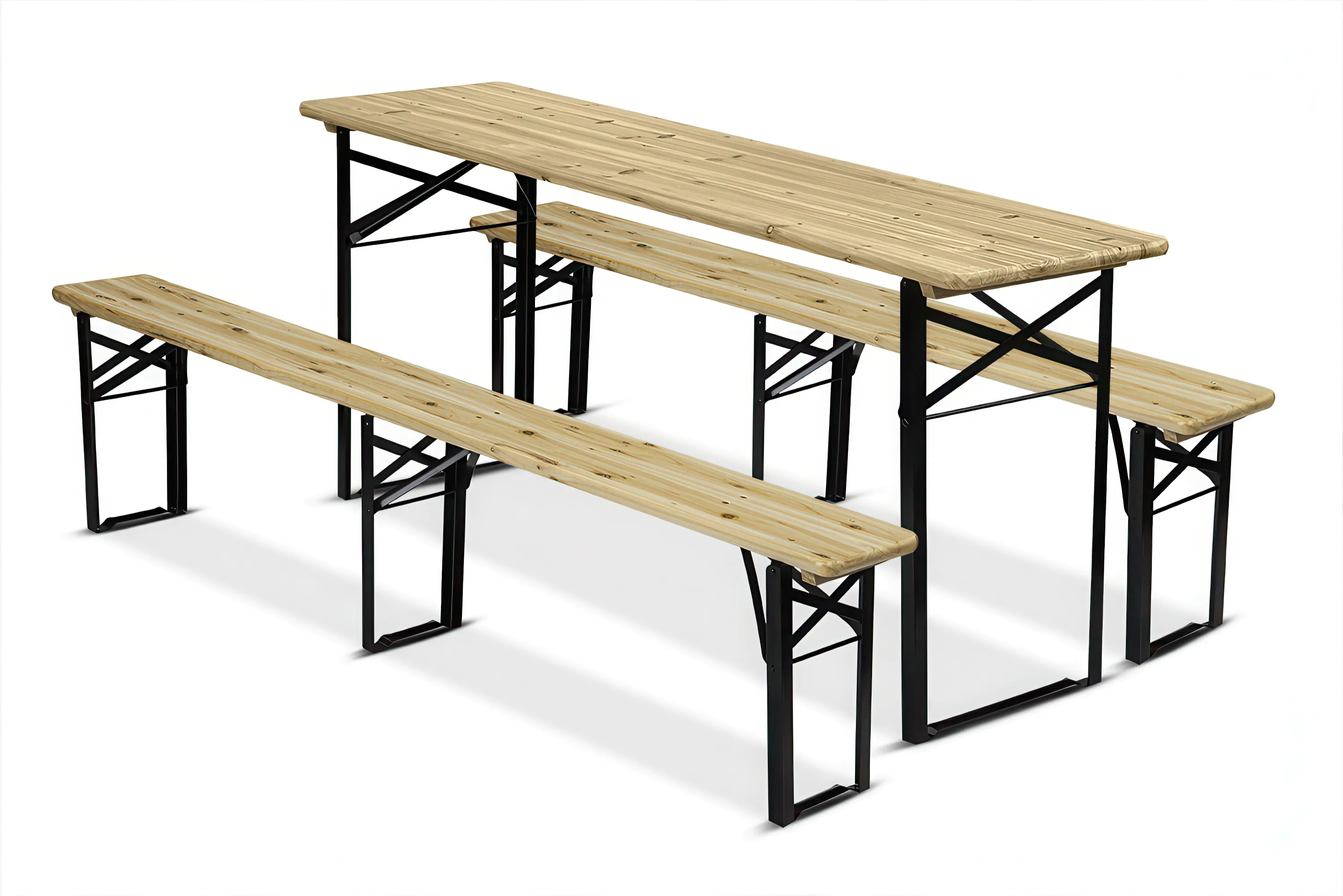 Objevte jedinečný set skládacího stolu FURNITURE 177 cm + 2x lavice od společnosti Focus Garden, který dokonale spojuje funkčnost s elegancí a stane se nepostradatelným prvkem vaší zahrady, terasy nebo venkovních setkání. Sada se skládá z prostorného stolu a dvou lavic, které jsou navrženy s ohledem na pohodlí a odolnost. Ocelový rám o rozměrech 27 × 27 mm, lakovaný stylovou černou barvou, zajišťuje stabilitu a odolnost vůči povětrnostním vlivům. Deska stolu a sedáky jsou vyrobeny z 25 mm silného jedlového dřeva, které zaručuje přírodní vzhled a dlouhou životnost. Stůl o rozměrech 177x46x75 cm nabízí prostor ideální pro servírování jídel nebo nápojů při setkání s rodinou a přáteli. Lavice o rozměrech 177x23x45 cm, vybavené třemi nohami, poskytují pohodlné a bezpečné sezení pro více osob. Díky maximálnímu zatížení stolu až 50 kg a lavic až 300 kg sada obstojí i u těch nejnáročnějších uživatelů. jednou z hlavních předností této sady je její skládací funkce, která umožňuje snadné skladování a přepravu. Ve složeném stavu má stůl rozměry 180x46x5,5 cm a každá z lavic 180x23x5,5 cm, což umožňuje úsporu místa a pohodlné skladování mimo sezónu. skládací pivní set od společnosti Focus Garden je ideální pro různé příležitosti - od rodinných setkání přes venkovní večírky až po komerční akce. Díky svému elegantnímu designu a robustní konstrukci dokonale zapadne do jakéhokoli prostoru a dodá mu šarm i funkčnost. výběrem této soupravy investujete do výrobku, který v sobě spojuje estetiku, odolnost a praktičnost, což zaručuje pohodlné používání po dlouhá léta.