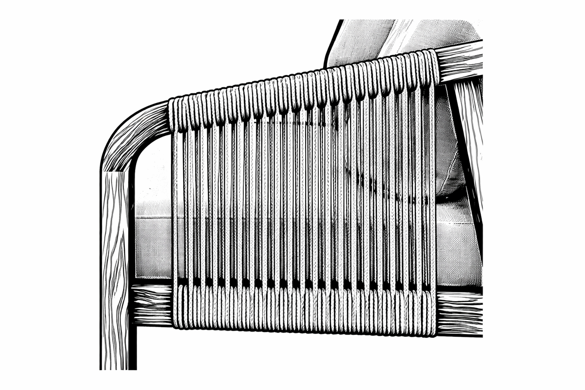Jedinečná 6mm úprava lanem dodává nábytku lehkost a exkluzivní skandinávský charakter.