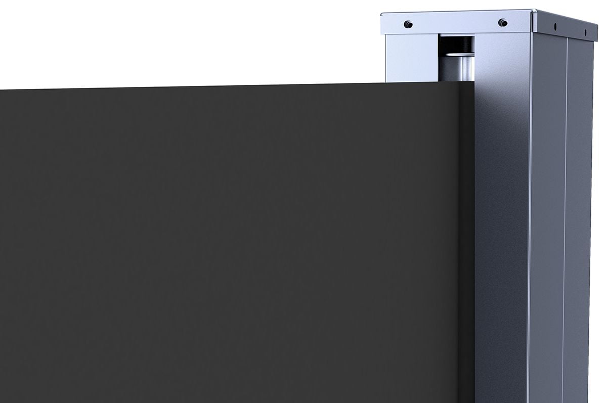 Tmavě šedá boční roleta na terasu Focus Garden 200x600 je robustní a elegantní ochrana vaší terasy proti slunci, větru a dešti. Je vyrobena z polyesterové tkaniny o hmotnosti 280 g/m² s PU zátěrem, což zajišťuje vysokou odolnost proti UV záření a vlhkosti. Stabilní pozinkovaný a práškově lakovaný ocelový rám zaručuje odolnost po dlouhá léta. Snadná montáž na stěnu a ruční mechanismus zatahování umožňují rychlé rozložení a zatažení krytu. Moderní tmavě šedá barva dokonale ladí s různými úpravami teras a zahrad.