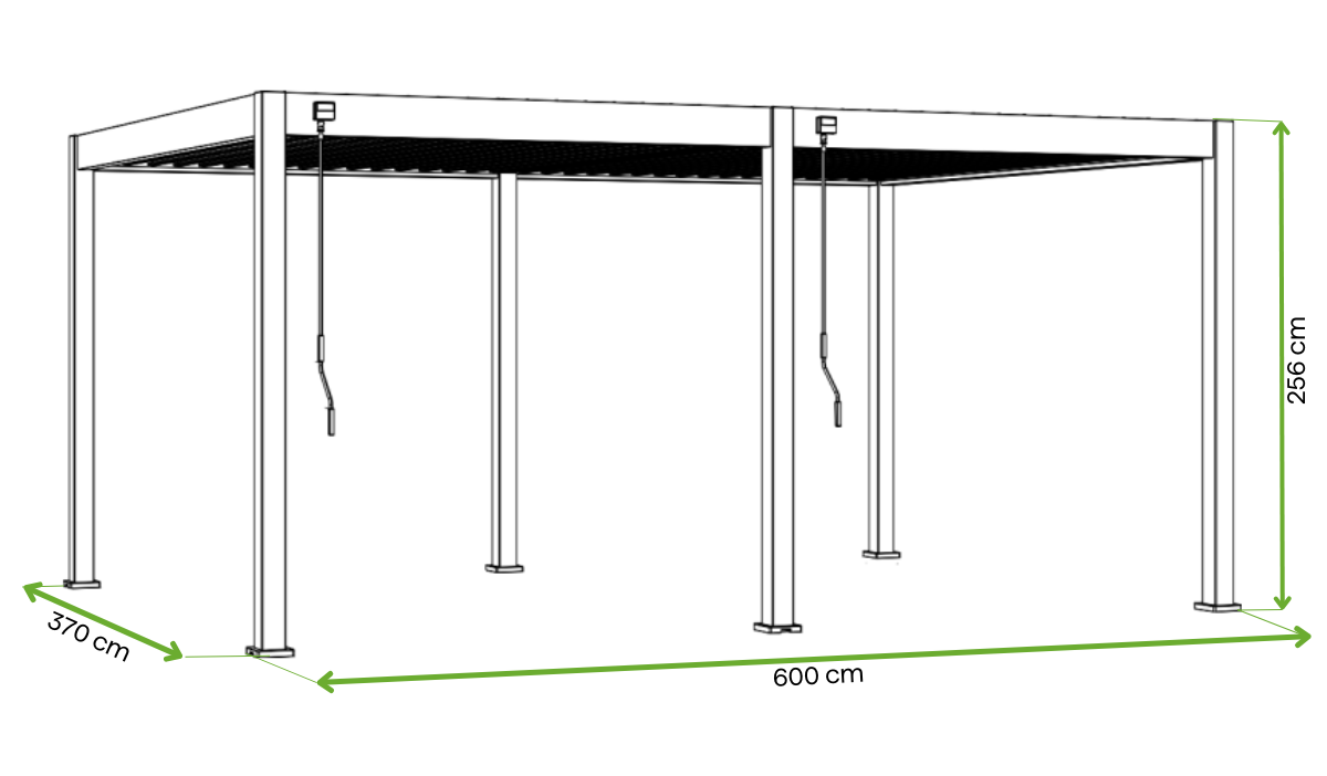 Rozměry pergoly: 370 × 600 × 256 cm
