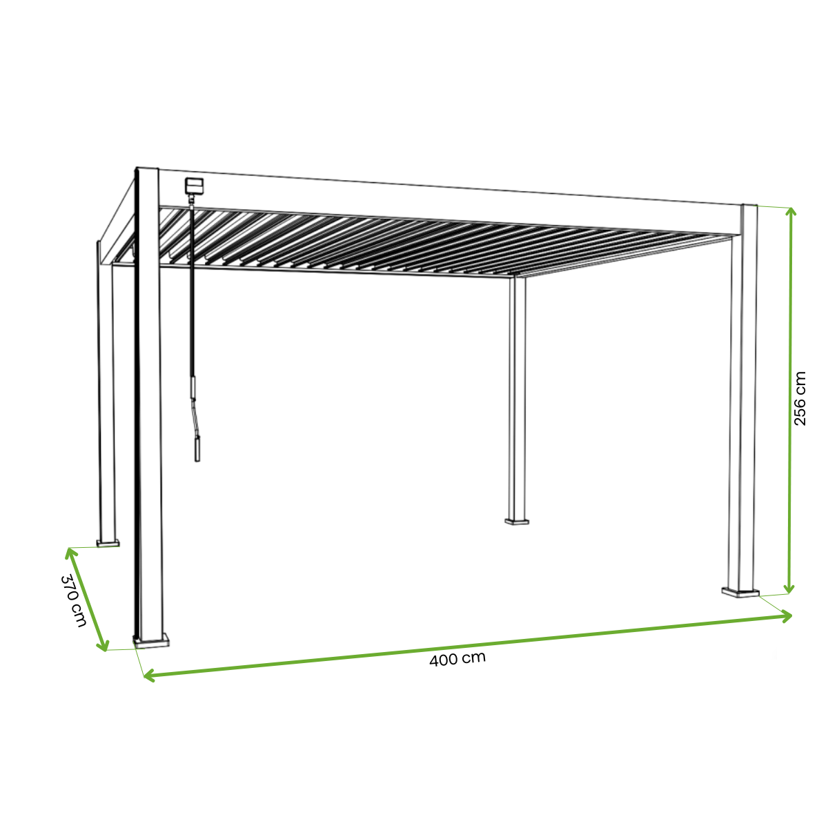 Rozměry pergoly: 370 × 400 × 256 cm