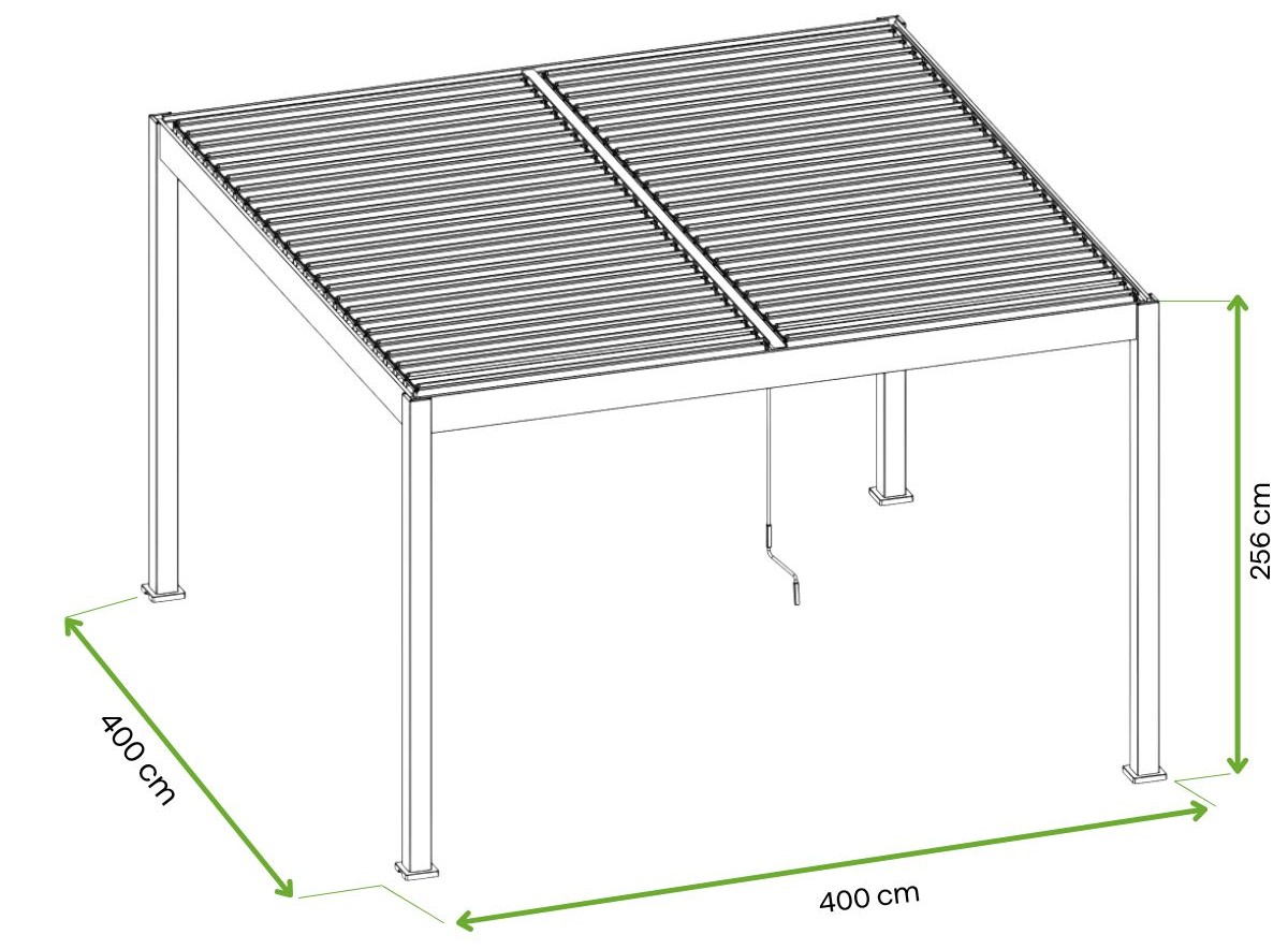 Dvojitá vrstva lamel ve střeše vytváří vzduchotěsnou bariéru, která spolehlivě chrání odpočinkovou zónu před nadměrným slunečním zářením. Dokonale se překrývající prvky jsou zárukou stabilní a odolné konstrukce, která spojuje eleganci se spolehlivou funkčností na dlouhá léta.