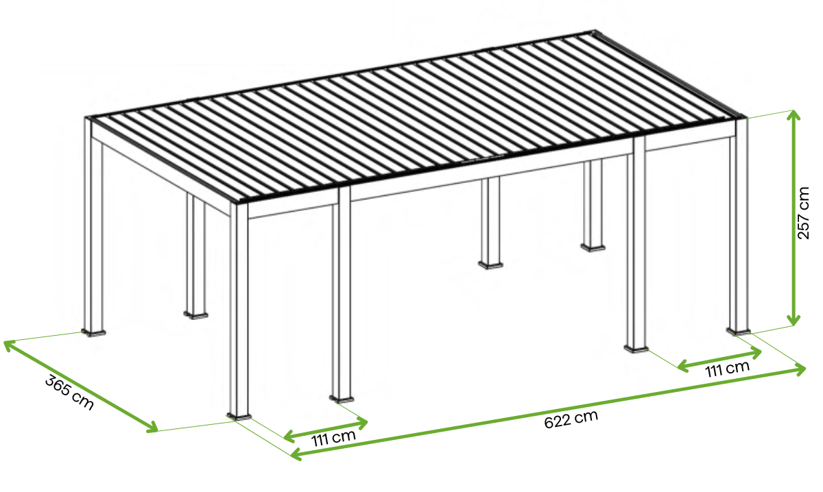 Pergola REFERENCE FULL AUTOMATIC je vybavena elektricky ovládanou střechou s lamelami, které vám umožní rychle a pohodlně přizpůsobit zastínění povětrnostním podmínkám. Lamely lze plynule naklápět nebo zavírat, čímž získáte kontrolu nad světlem a ochranou před deštěm - bez nutnosti manuálního nastavení.