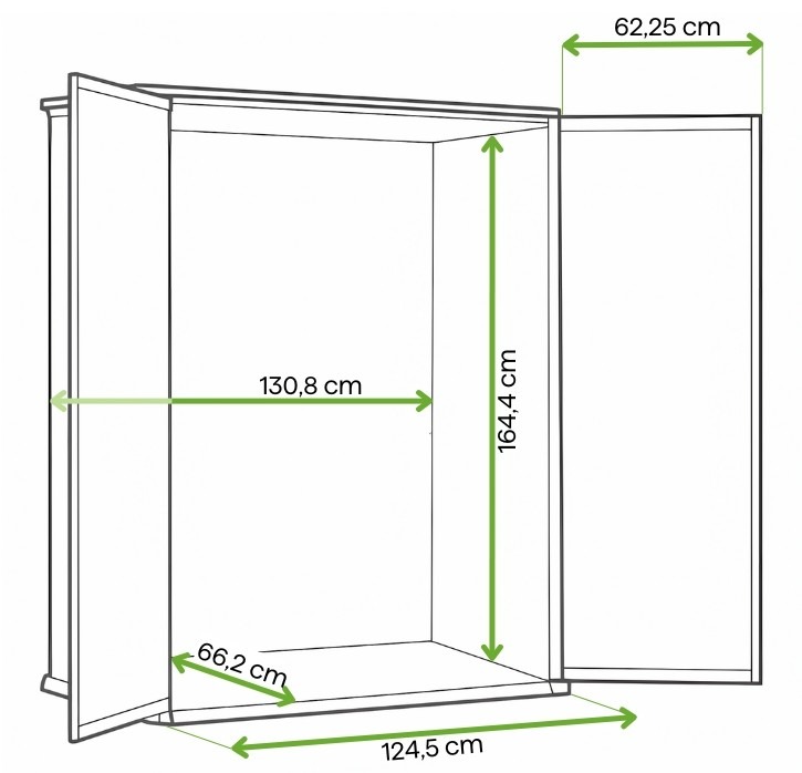 Vnější rozměry: 140 × 73,6 × 170,4 cm