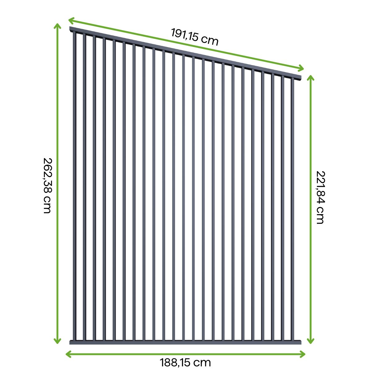 Vylepšete estetiku svého okolí vertikálním vzorem, který pergole dodává moderní a luxusní vzhled. Panel pokrývající polovinu strany o délce 4 m vnáší do zahradní architektury vítanou asymetrii a lehkost, díky čemuž se váš prostor stane jedinečnou vizitkou vašeho domova, která potěší každého návštěvníka.