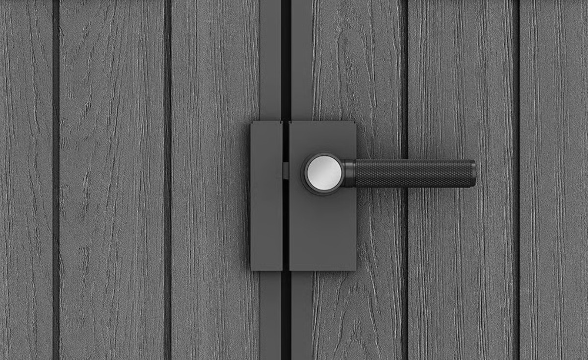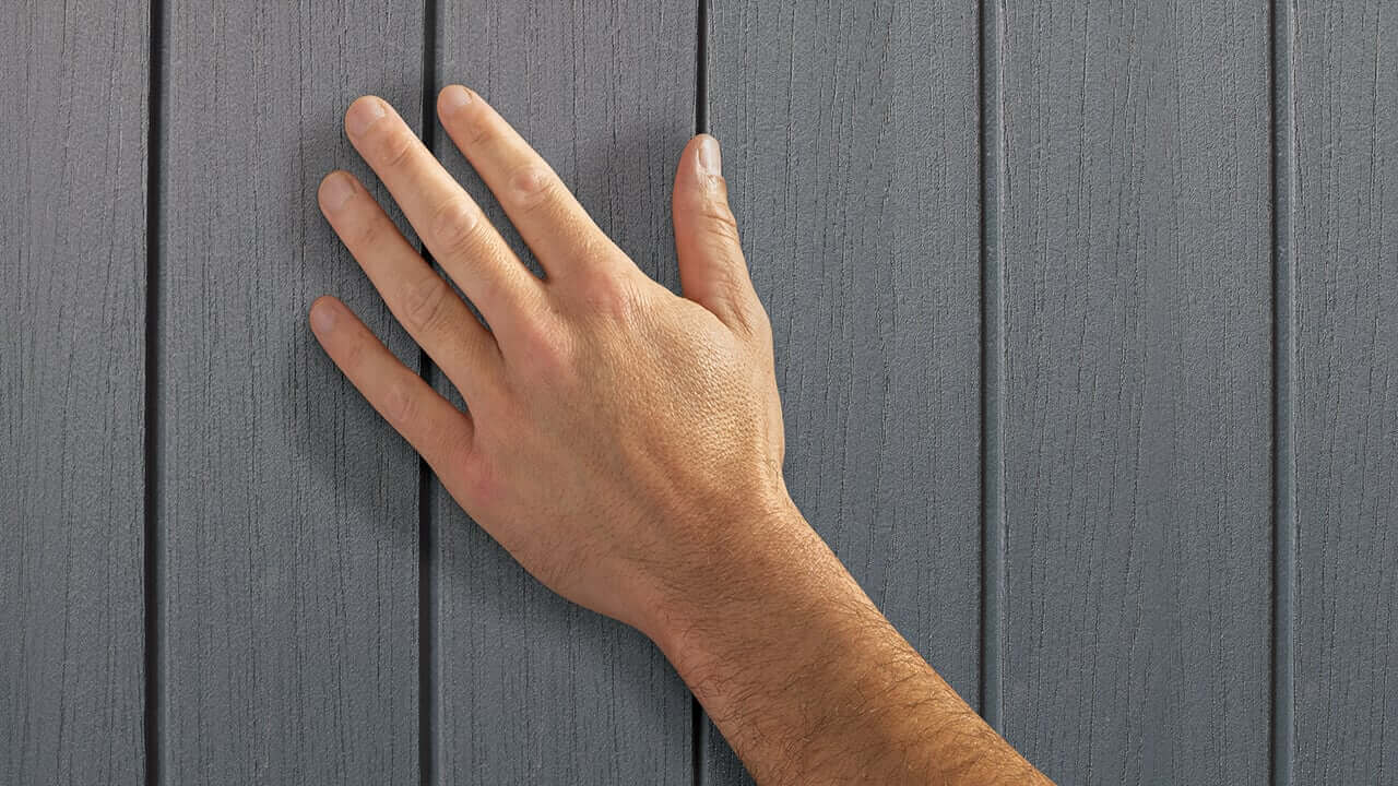 Stěny domku jsou zhotoveny z kompozitních panelů Evotech+, které věrně napodobují strukturu přírodního dřeva. Spojují elegantní vzhled s dlouhou životností a nevyžadují nátěr ani impregnaci.