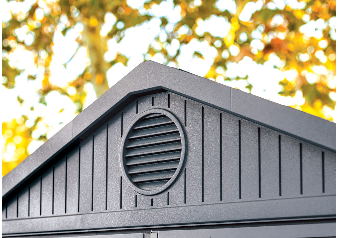 Zahradní domek Darwin 6x8 je prostorná a robustní konstrukce ideální pro skladování nářadí, zahradní techniky a sezónních doplňků. Je vyroben z odolných 16mm kompozitních panelů Evotech+, nevyžaduje žádnou údržbu a výborně odolává dešti, slunci i proměnlivým povětrnostním podmínkám. Široké dvoukřídlé dveře usnadňují přístup do interiéru, vysoký strop zajišťuje pohodlný pohyb. Integrované okno a ventilační systém zajišťují denní světlo a správnou cirkulaci vzduchu. Konstrukci lze snadno udržovat v čistotě a její montáž je rychlá a bezproblémová. Na celý domek je poskytována 10letá záruka, což dokládá jeho odolnost a vysokou kvalitu zpracování.