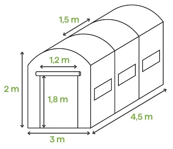 Fóliový tunel o rozloze 13,5 m² je skvělým řešením pro ty, kteří chtějí vytvořit vhodné podmínky pro růst svých rostlin. Stabilní konstrukce z pozinkovaných ocelových profilů a krytina z odolné PE fólie s filtrem UV4 účinně chrání plodiny před nepříznivými povětrnostními podmínkami a zároveň umožňují regulaci teploty a úrovně vlhkosti uvnitř. Konstrukce tunelu obsahuje 6 oken se síťkami proti hmyzu, široké, rolovací dveře a dodatečné příčky pro zvýšení stability.