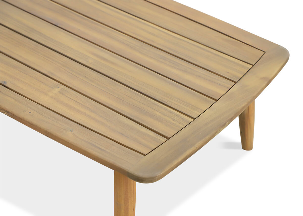 Konstrukce je vyrobena z akátového dřeva s certifikátem FSC, což představuje kombinaci odolnosti a šetrnosti k životnímu prostředí. Akáciové dřevo je odolné vůči poškození a vlhkosti, takže si stůl a židle zachovají svůj krásný vzhled po mnoho let. Přírodní, teplé zbarvení akácie přináší do interiéru nebo na zahradu útulnou a elegantní atmosféru.