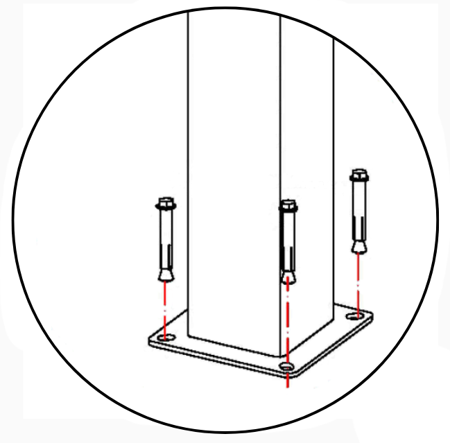 Montážní kotvy jsou součástí dodávky, ale pro větší stabilitu doporučujeme použít delší kotvy, přizpůsobené typu podkladu.