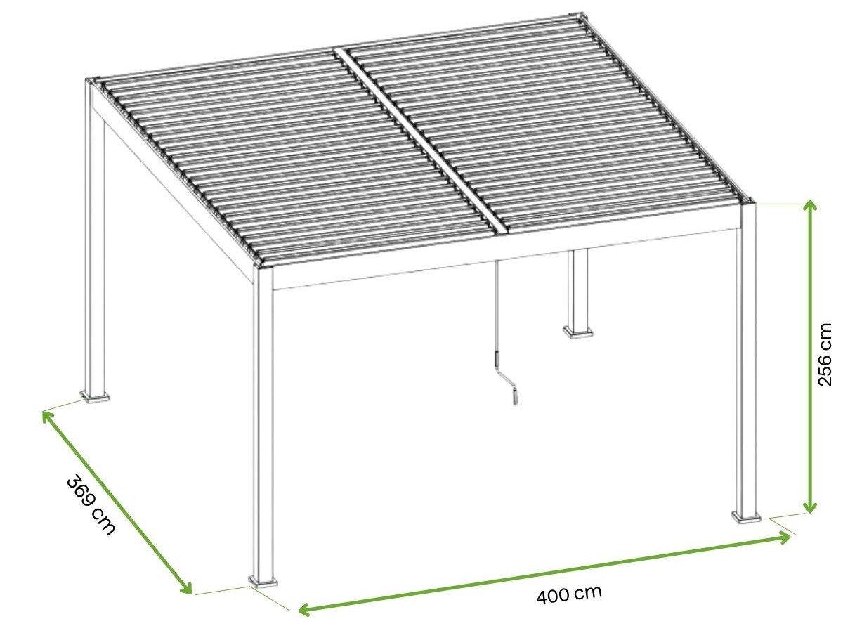 Ruční nastavení lamel vám dává úplnou a okamžitou kontrolu nad množstvím světla. Lamely můžete rychle a pohodlně nastavit tak, abyste vytvořili stín nebo pustili více slunce. Lehký a intuitivní mechanismus zajišťuje, že každodenní úprava podmínek pod pergolou je jednoduchá a bez námahy.