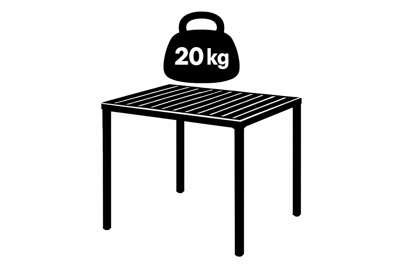 Stůl BRIS má nosnost až 20 kg, což zajišťuje bezpečné používání při každodenním stolování a setkávání. Stabilní konstrukce s kovovými nohami a 1,9 cm silnou deskou rovnoměrně rozkládá zátěž a omezuje prohýbání.