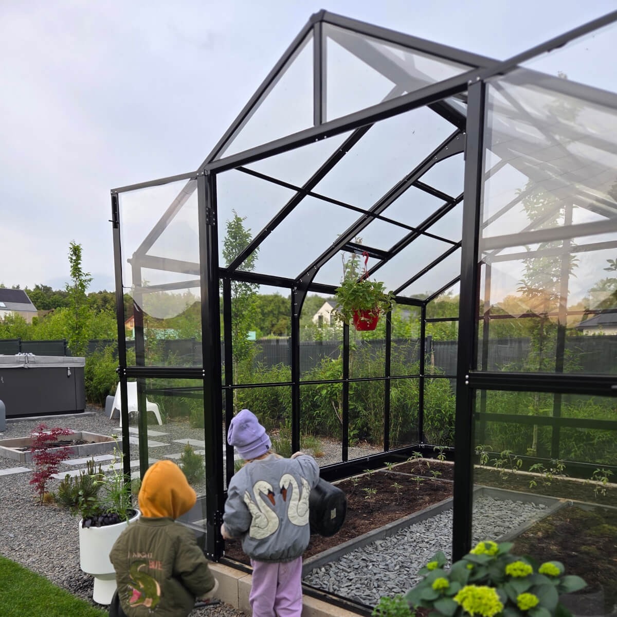 Skleník SOLID PC je spolehlivé řešení pro zahrádkáře, které v sobě spojuje odolnost, funkčnost a snadnou instalaci. Je vyroben z robustních hliníkových profilů o tloušťce 1,00–1,8 mm a desek z pevného polykarbonátu o tloušťce 2 mm, poskytuje odolnost proti poškození a výborné světelné podmínky pro rostliny po celý rok se skleněným efektem. Inovativní systém rychlého připojení eliminuje potřebu posuvných šroubů a předinstalované matky výrazně usnadňují instalaci. Dveře o rozměrech 113x207 cm s nízkým prahem zaručují pohodlný přístup a transport větších předmětů a integrovaný zámek a ventilační funkce zajišťují bezpečnost a optimální cirkulaci vzduchu. Integrovaný okapový systém se čtyřmi hliníkovými svody účinně odvádí vodu, zatímco pozinkovaný základ vysoký 12 cm stabilizuje konstrukci i za nepříznivých povětrnostních podmínek. Díky modulární konstrukci lze skleník snadno rozšířit o další sekce (každá o délce 137 cm), což umožňuje přizpůsobit jeho velikost potřebám zahrady. Vyberte si zahradní skleník SOLID PC s certifikáty CE, EN 1090 a ISO 9001 – zvolte evropskou kvalitu, bezpečnost a odolnost potvrzenou normami.