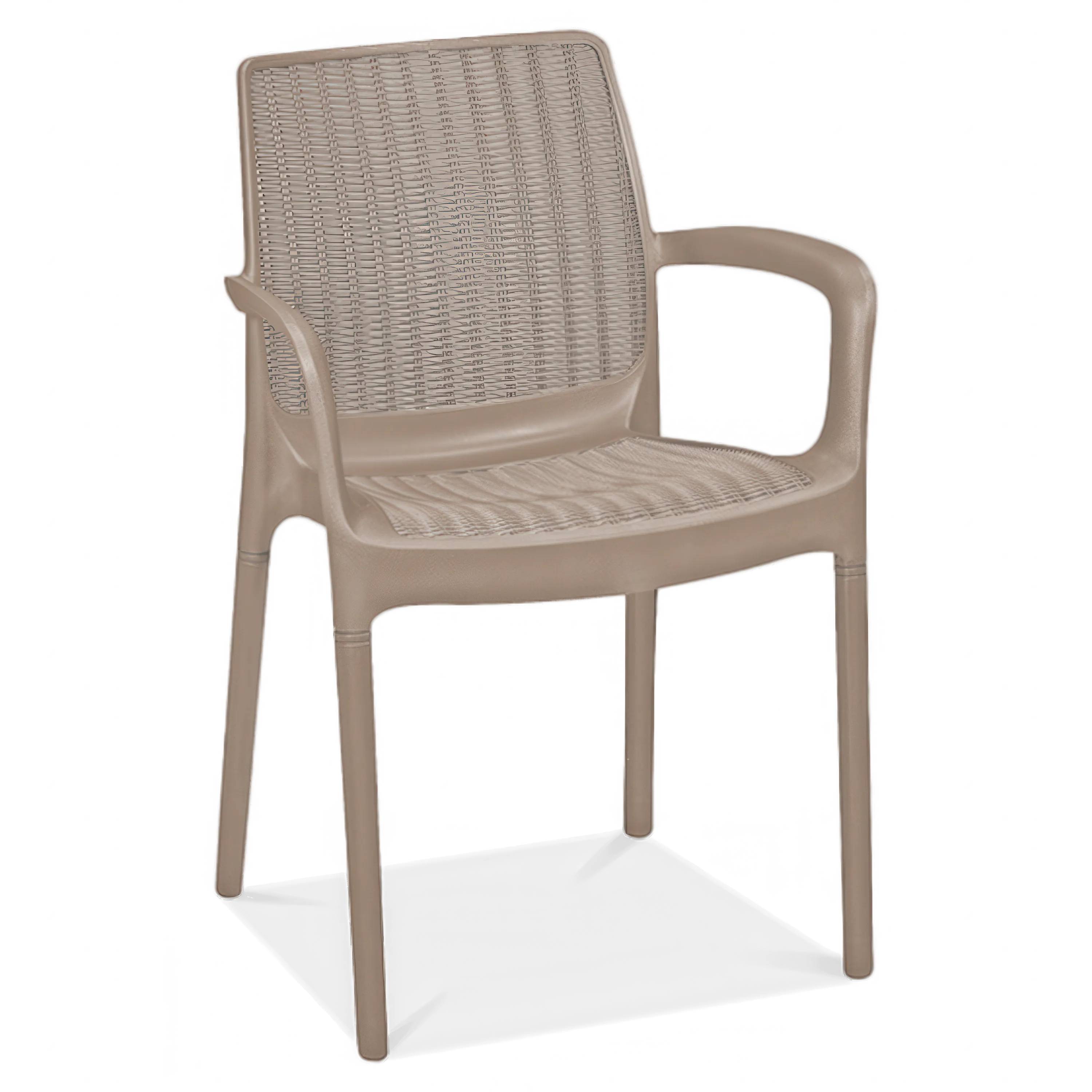 Židle BALI MONO CAPPUCCINO je elegantní a funkční řešení od společnosti KETER. Židle CAPPUCINO je vyrobena z plastu odolného proti povětrnostním vlivům a zachovává si stálou barvu i při vystavení slunečnímu záření. Díky své "monoblokové" konstrukci je mimořádně tuhá a protiskluzové konce nohou zaručují stabilitu na mokrém povrchu. Vzor sedáku a opěradla připomíná přírodní ratan, což mu dodává jedinečný vzhled. Díky možnosti stohování jsou židle řady Bali Mono praktické pro skladování.